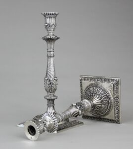 Zu den überraschendsten Ergebnissen zählte u.a. der Zuschlag für ein Paar Dubliner George III. – Kerzenleuchter, bei einem Schätzpreis von EUR 3.000.- konnte sich nach langem Bietgefecht ein englischer Sammler das einmalige, 1770 von dem Dubliner Silberschmied Richard Williams gefertigten Leuchterpaar bei einem Zuschlag von EUR 40.000.- sichern, überhaupt war Silber diesmal sehr begehrt, eine Vermeil – Messgarnitur aus Freising konnte erst bei EUR 6.400.- (EUR 1.200.-) und eine Königsberger Zuckerdose der 1840er Jahre bei EUR 1.450.- (EUR 500.-) zugeschlagen werden.
