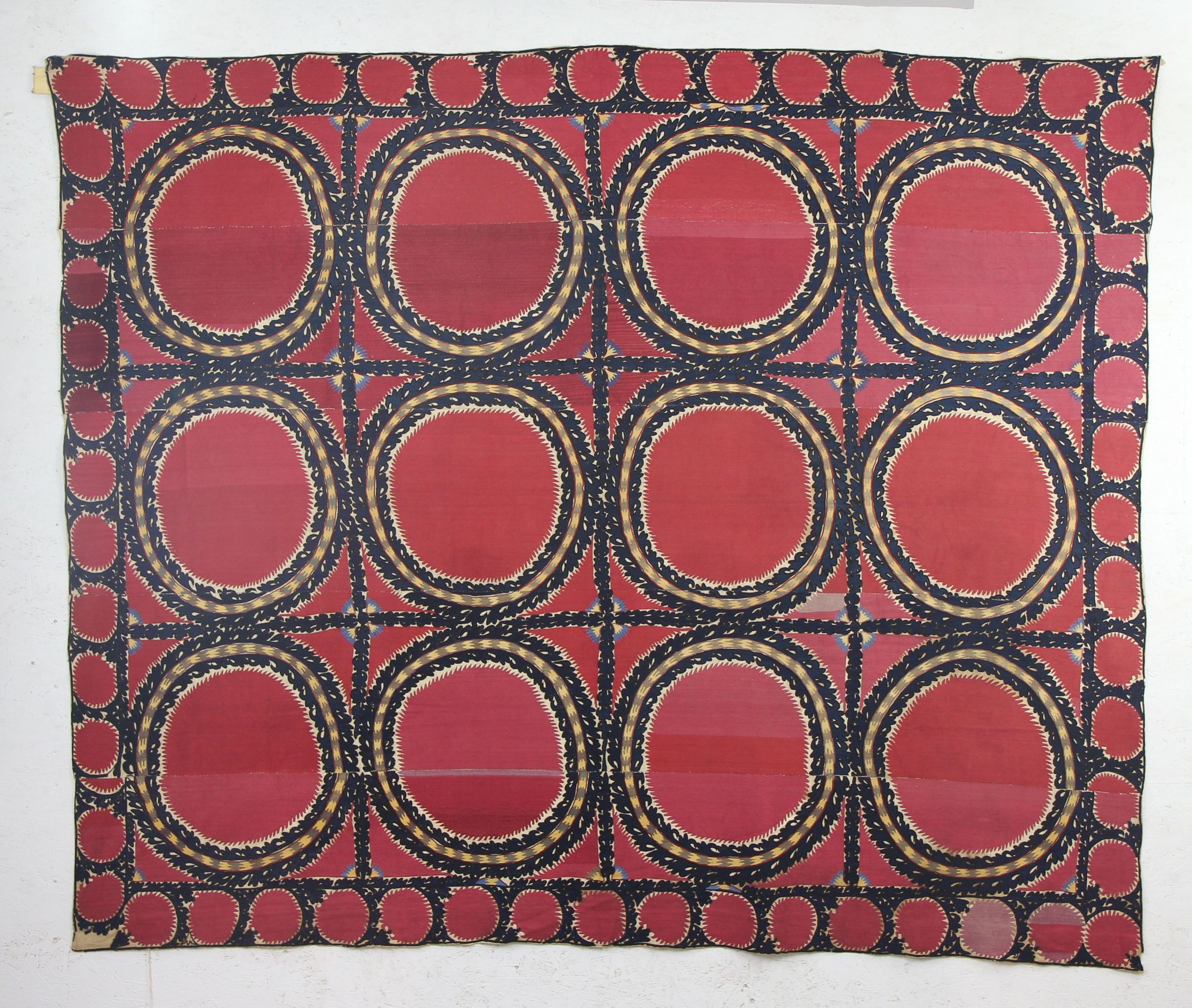 Auktion 61 Taschkent – Suzani In unserer Herbst-Auktion Lot 61490 Seide bzw. Baumwolle auf Leinen gestickt, 252 x 210 cm, Usbekistan, wohl Taschkent 19.Jhd.