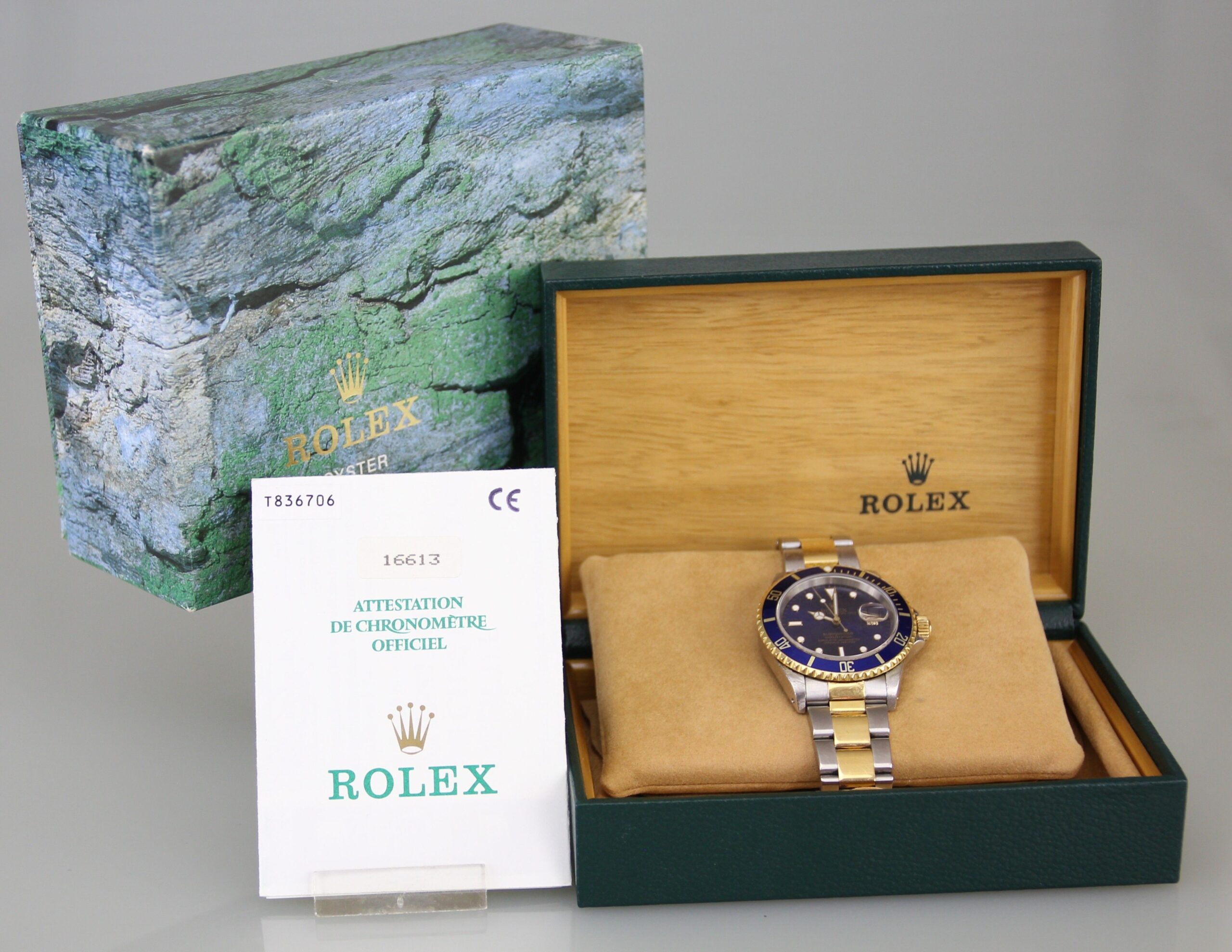 Auktion 61 HTU „Rolex Oyster Perpetual Date Submariner“ In unserer Herbst-Auktion Lot 61561 Gehäuse und Band Stahl und Gold 18kt., Automatikwerk Kaliber 3135, im originalen Lederkasten mit Überkarton, dabei originale Garantiekarte von 1997 sowie weitere Unterlagen